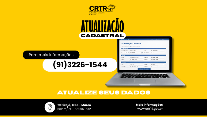 CRTR 14ª Região • Atualização Cadastral ATUALIZAÇÃO CADASTRAL 2026 Atualize seus dados Manter suas informações atualizadas junto ao CRTR 14ª Região garante segurança nas comunicações oficiais e viabiliza a emissão da nova CIP física e a liberação da carteira digital….
